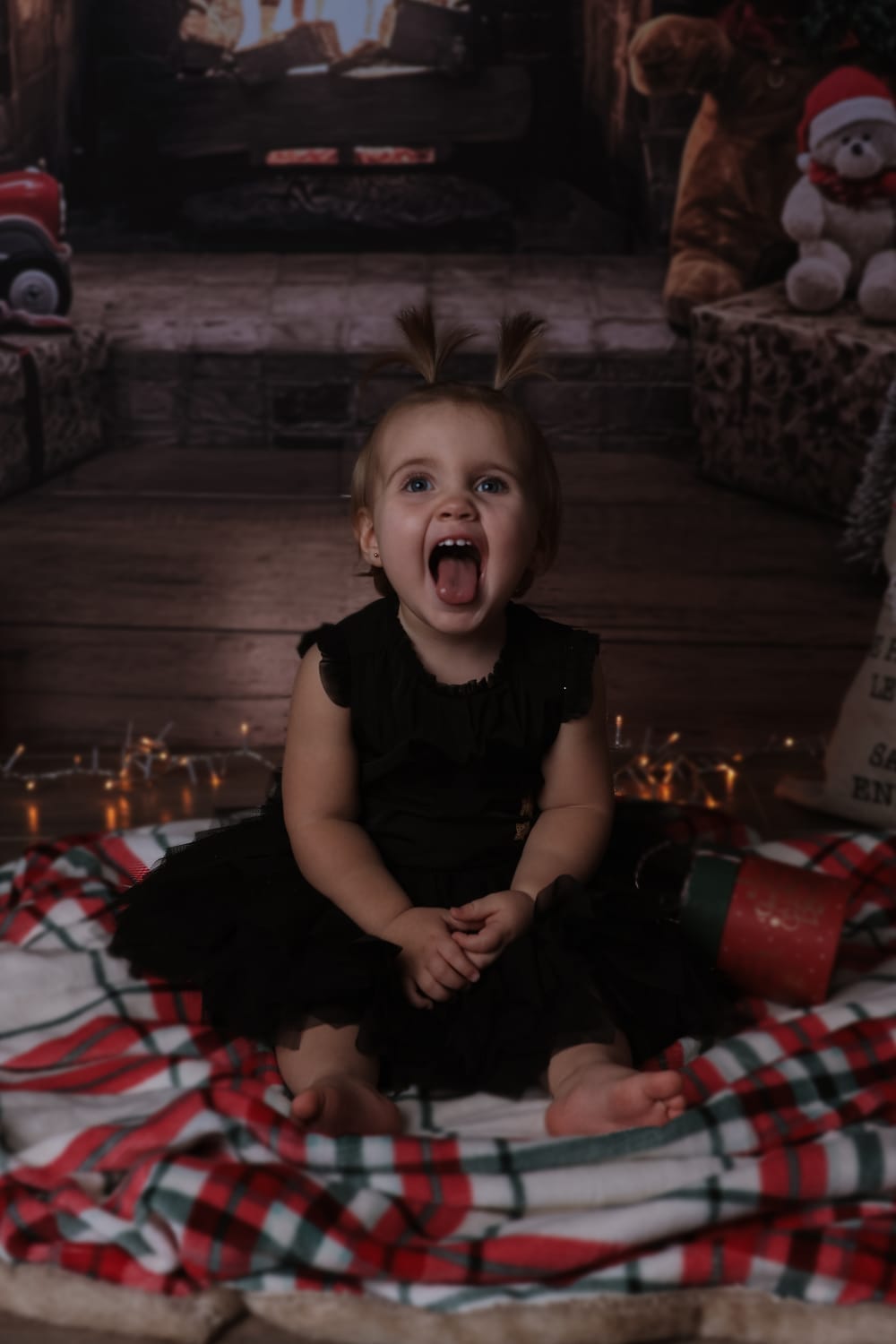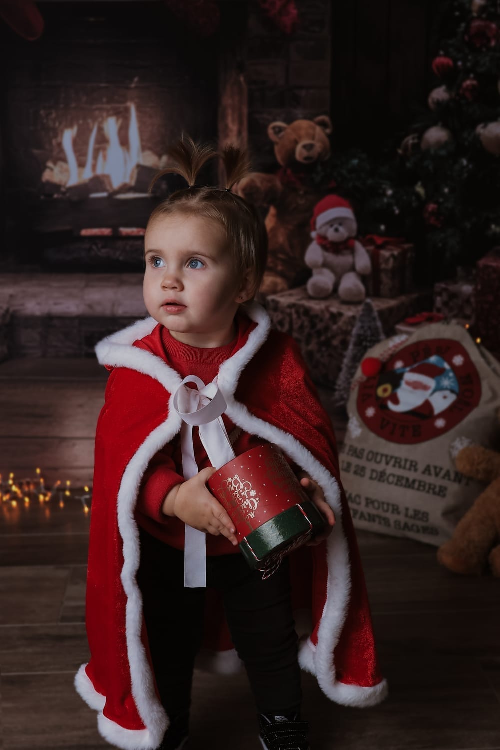 Les séances se déroulent dans un décor entièrement pensé pour Noël : lumières douces, ambiance cocooning, accessoires et mise en scène adaptée aux tout-petits comme aux plus grands. Je fais en sorte que chacun se sente bien dès son arrivée.